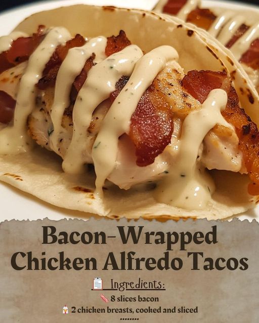 Here’s a delicious recipe for Bacon-Wrapped Chicken Alfredo Tacos that combines savory flavors in a fun way!