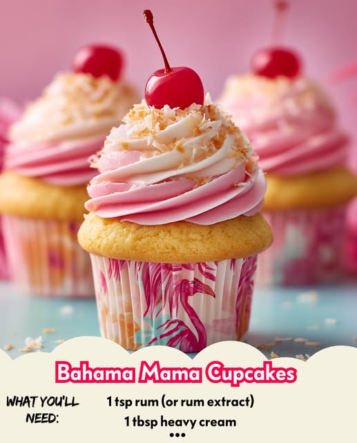 Here’s a tropical treat that packs all the island flavor of the classic cocktail into a fun, fruity dessert: Bahama Mama Cupcakes! 🍹🧁 These cupcakes feature hints of pineapple, orange, coconut, and rum β€” just like the drink. They’re perfect for summer parties, beach-themed events, or anytime you need a little taste of paradise.