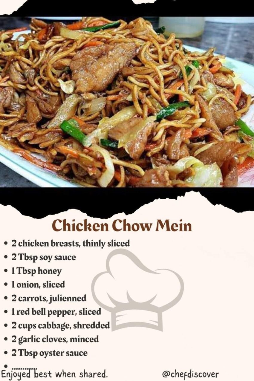 Chicken Chow Mein is a classic Chinese-American dish featuring stir-fried noodles, vegetables, and chicken. Here’s a simple recipe to make Chicken Chow Mein at home: