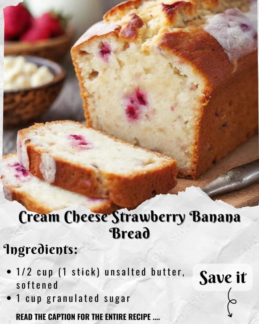Here’s a delightful recipe for Cream Cheese Strawberry Banana Bread:Ingredients: