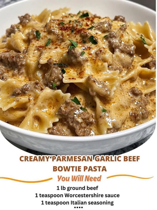 Here’s a creamy, savory Parmesan Garlic Beef Bowtie Pasta recipe—comfort food at its finest with tender beef, a rich Parmesan-garlic cream sauce, and perfectly cooked bowtie pasta.