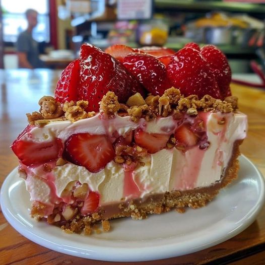 Here’s a delightful recipe for a Decadent Strawberry Cheesecake with a crunchy granola crust. It’s a perfect blend of creamy cheesecake and sweet, tangy strawberries, complemented by the crunch of granola.