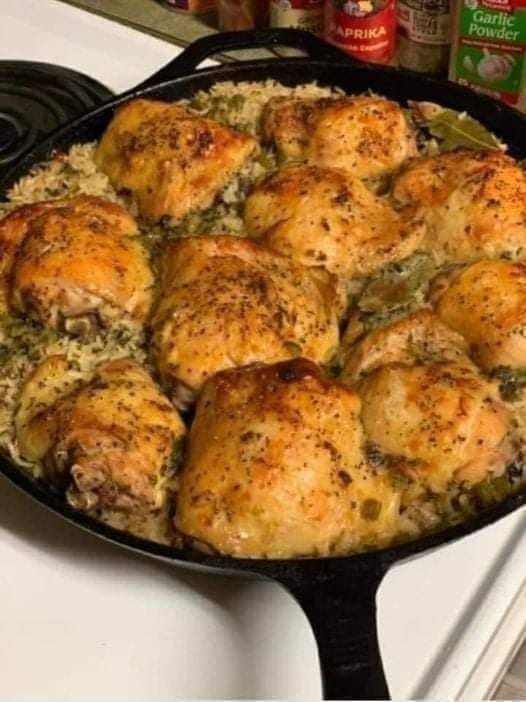 Here’s a comforting and easy recipe for Oven-Baked Chicken and Rice that combines tender chicken with fluffy, flavorful rice, all cooked together in one pan: