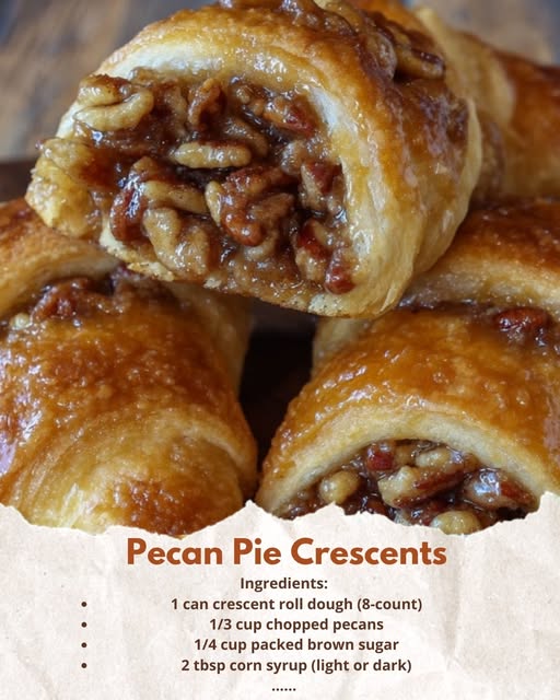Here’s a sweet and simple recipe for Pecan Pie Crescents — all the rich, gooey goodness of pecan pie wrapped in flaky crescent roll dough. These are perfect for holidays, potlucks, or just a quick dessert craving.