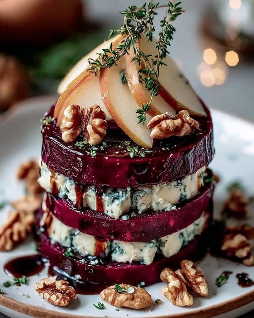 π§ Roasted Beet & Blue Cheese Towers with Pear & Balsamic Glaze